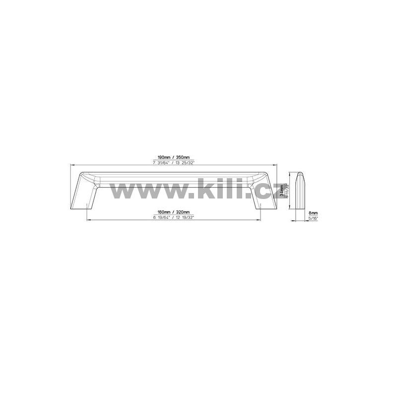 | Specifikace | Rozteč otvorů: 320 mm Délka: 350 mm Šířka: 8 mm Hloubka: 34 mm |