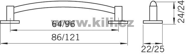 | Specifikace | Rozteč otvorů: 96 mm Délka: 121 mm Šířka: 25 mm Hloubka: 24 mm |