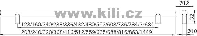 | Specifikace | Rozteč otvorů: 608 mm Délka: 688 mm Šířka: 12 mm Hloubka: 32 mm |