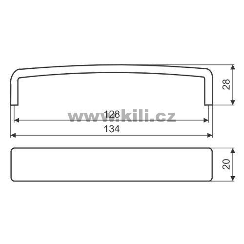 | Specifikace | Délka: 136 mm Výška: 28 mm Šířka: 20 mm Rozteč otvorů: 128 mm |