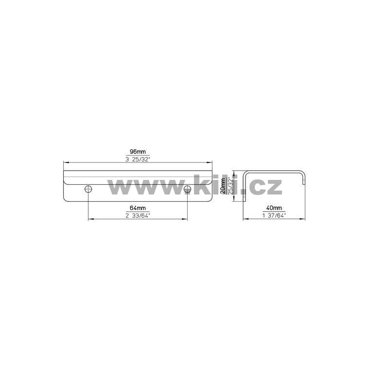 | Specifikace | Rozteč otvorů: 64 mm Délka: 94 mm Šířka: 40 mm Hloubka: 20 mm |