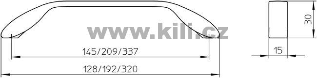 | Specifikace | Rozteč otvorů: 128 mm Délka: 145 mm Výška: 30 mm Šířka: 15 mm |