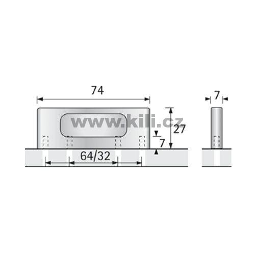 | Specifikace | Délka: 74 mm Rozteč otvorů: 64/32 mm |