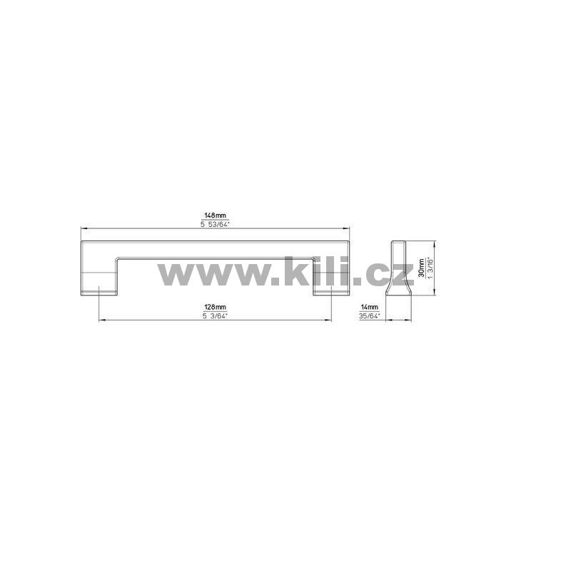 | Specifikace | Rozteč otvorů: 128 mm Délka: 148 mm Šířka: 14 mm Hloubka: 30 mm |