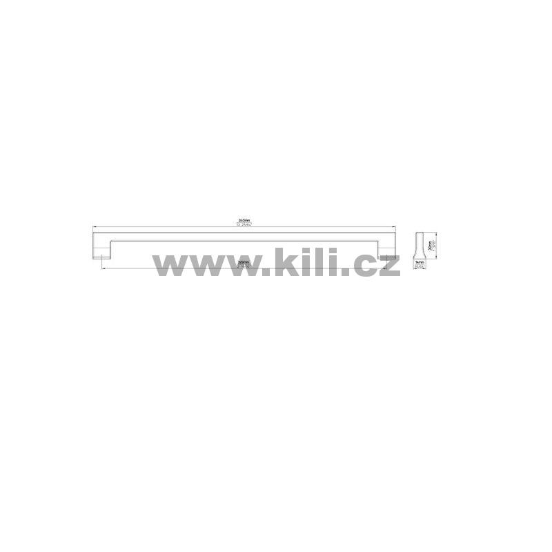 | Specifikace | Rozteč otvorů: 320 mm Délka: 340 mm Šířka: 14 mm Hloubka: 30 mm |