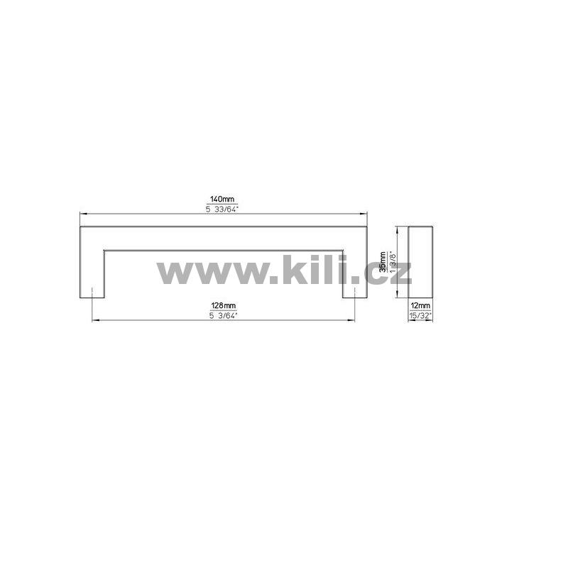 | Specifikace | Rozteč otvorů: 128 mm Délka: 140 mm Šířka: 12 mm Hloubka: 35 mm |