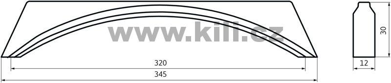 | Specifikace | Rozteč otvorů: 320 mm Délka: 345 mm Výška: 31 mm Šířka: 12 mm |