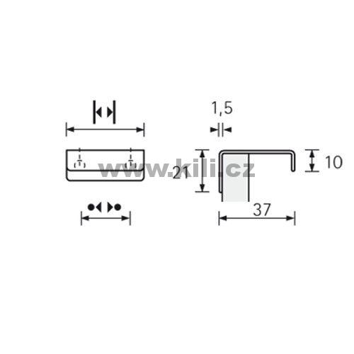 | Specifikace | Šířka: 37 mm Výška: 21 mm Rozteč otvorů: 50 mm Délka: 60 mm |
