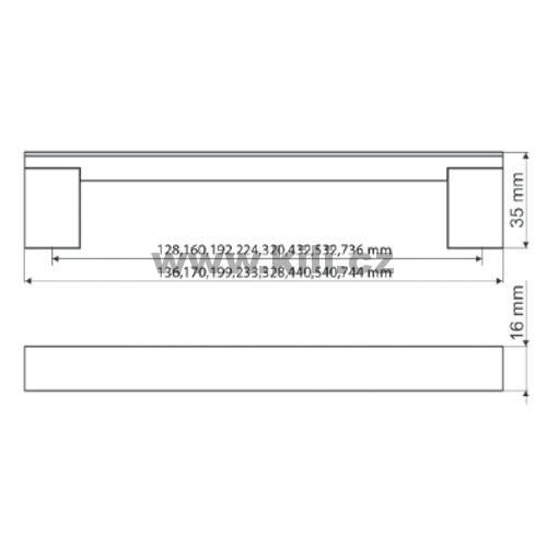 | Specifikace | Délka: 744 mm Výška: 35 mm Šířka: 16 mm Rozteč otvorů: 736 mm |