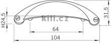 | Specifikace | Rozteč otvorů: 64 mm Délka: 103 mm Výška: 25 mm Šířka: 32 mm |