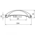 | Specifikace | Rozteč otvorů: 64 mm Délka: 103 mm Výška: 25 mm Šířka: 32 mm |