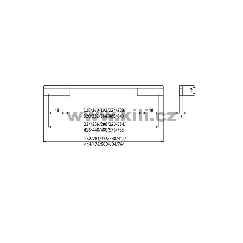 | Specifikace | Rozteč otvorů: 224 mm Délka: 252 mm Šířka: 29 mm Hloubka: 10 mm |