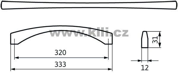 | Specifikace | Rozteč otvorů: 320 mm Délka: 333 mm Výška: 31 mm Šířka: 12 mm |