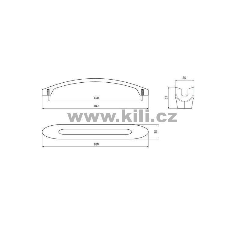 | Specifikace | Rozteč otvorů: 160 mm Délka: 180 mm Výška: 29 mm Šířka: 25 mm |