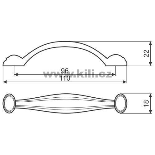 | Specifikace | Délka: 110 mm Výška: 22 mm Šířka: 18 mm Rozteč otvorů: 96 mm |