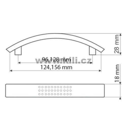 | Specifikace | Délka: 124 mm Výška: 28 mm Šířka: 18 mm Rozteč otvorů: 96 mm |