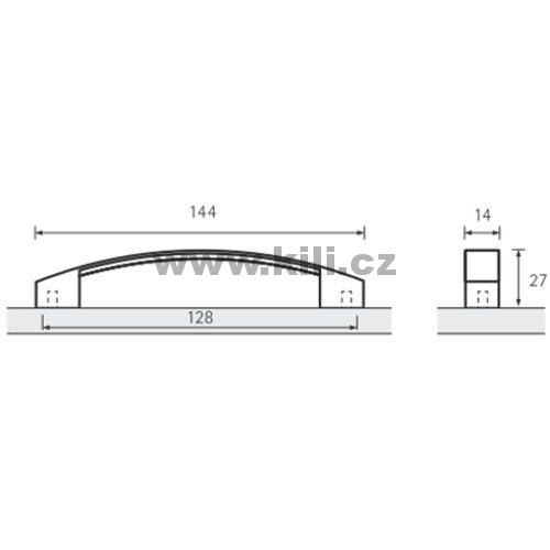 | Specifikace | Rozteč otvorů: 128 mm Délka: 144 mm Výška: 27 mm Šířka: 14 mm |