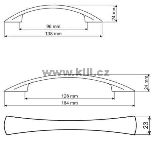 | Specifikace | Délka: 184 mm Výška: 24 mm Šířka: 23 mm Rozteč otvorů: 128 mm |