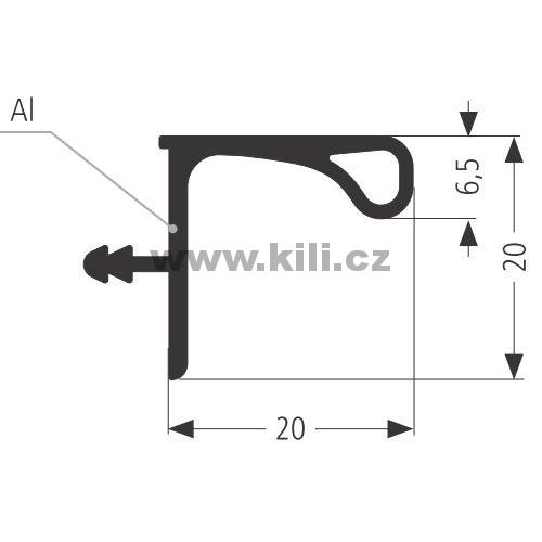 | Specifikace | Délka: 4000 mm Výška: 20 mm Hloubka: 28 mm |