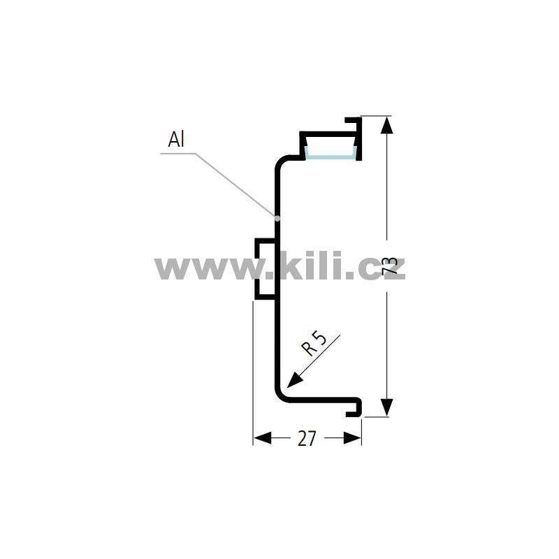 | Specifikace | Hloubka: 27 mm Délka: 2050 mm Výška: 73 mm |