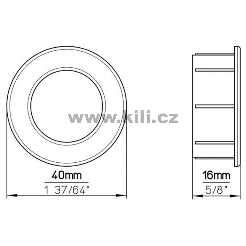 | Specifikace | Průměr: 40 mm Výška: 16 mm Hloubka: 14 mm |