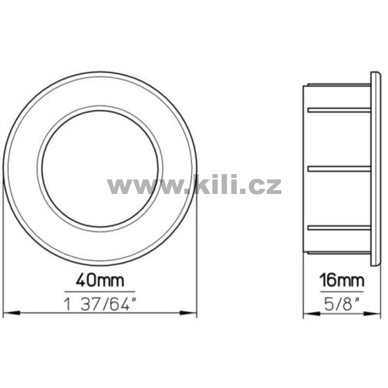 | Specifikace | Průměr: 40 mm Výška: 16 mm Hloubka: 14 mm |