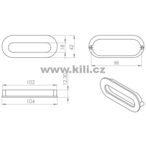 | Specifikace | Délka: 106 mm Šířka: 42 mm Rozteč otvorů: 96 mm Hloubka: 12 mm |