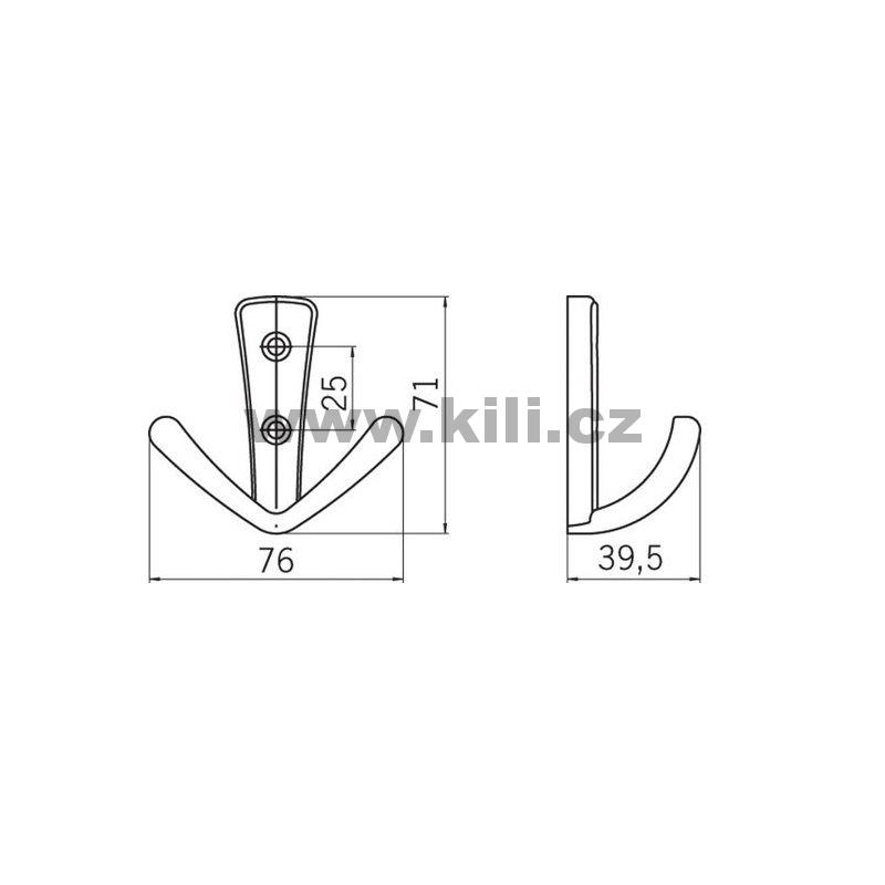 | Specifikace | Výška: 71 mm Šířka: 76 mm Hloubka: 40 mm Rozteč otvorů: 25 mm |
