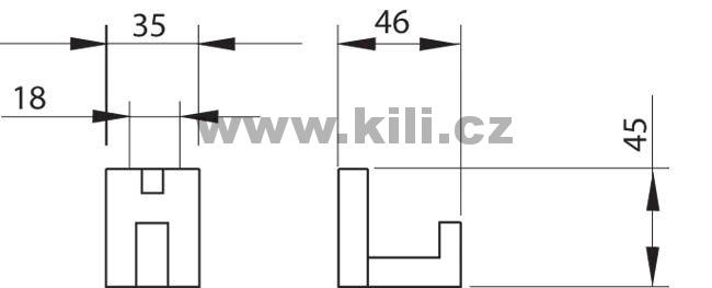 | Specifikace | Výška: 45 mm Šířka: 35 mm Hloubka: 46 mm Rozteč otvorů: 18 mm |