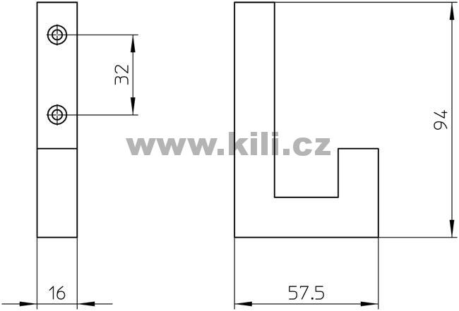 | Specifikace | Výška: 95 mm Šířka: 16 mm Hloubka: 57 mm Rozteč otvorů: 32 mm |