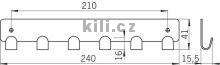 | Specifikace | Délka: 240 mm Šířka: 41 mm Hloubka: 16 mm Rozteč otvorů: 210 mm |