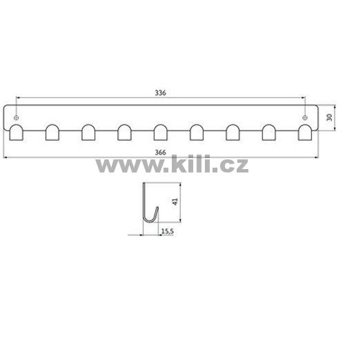 | Specifikace | Délka: 366 mm Šířka: 41 mm Hloubka: 16 mm Rozteč otvorů: 336 mm |