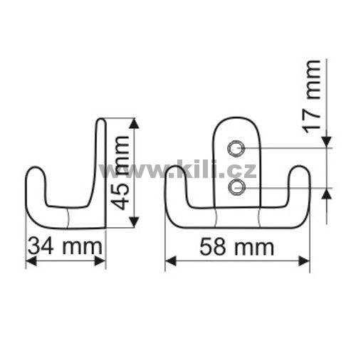 | Specifikace | Hloubka: 33 mm Rozteč otvorů: 17 mm Výška: 45 mm Šířka: 58 mm |