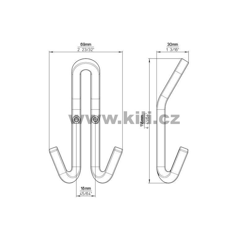 | Specifikace | Rozteč otvorů: 18 mm Výška: 118 mm Hloubka: 30 mm Šířka: 69 mm |