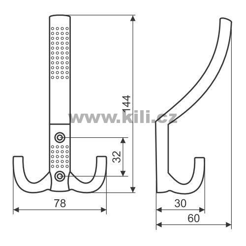 | Specifikace | Šířka: 78 mm Rozteč otvorů: 32 mm Výška: 144 mm Hloubka: 60 mm |