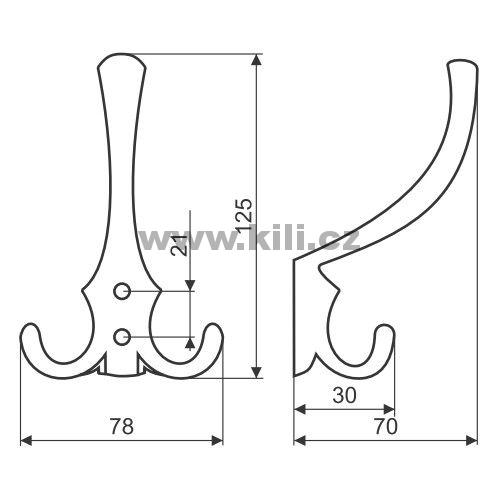 | Specifikace | Šířka: 78 mm Rozteč otvorů: 21 mm Výška: 125 mm Hloubka: 70 mm |