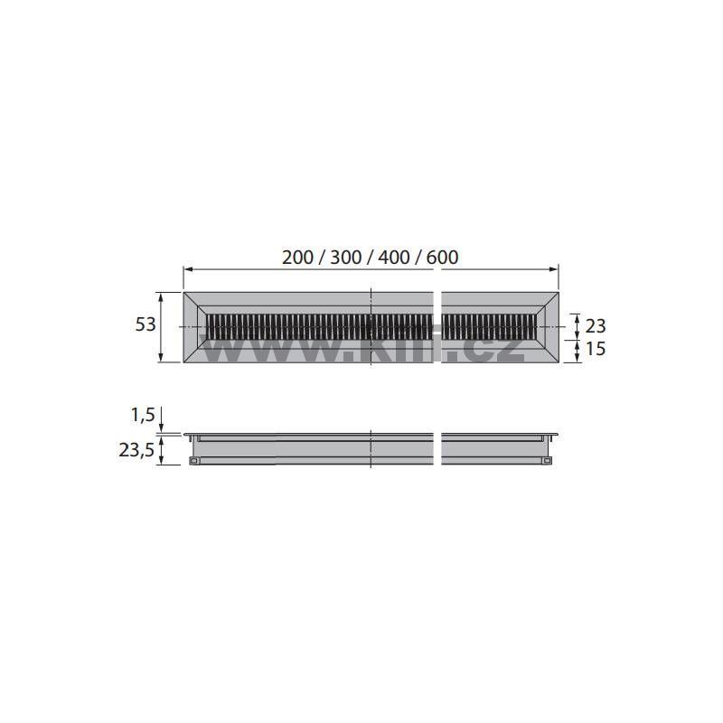 | Specifikace | Délka: 400 mm Šířka: 53 mm Hloubka: 25 mm |