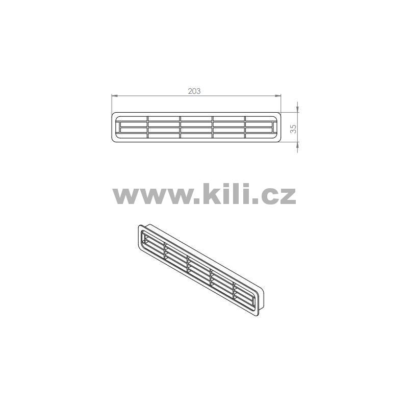 Mřížka větrací bílá 203x35