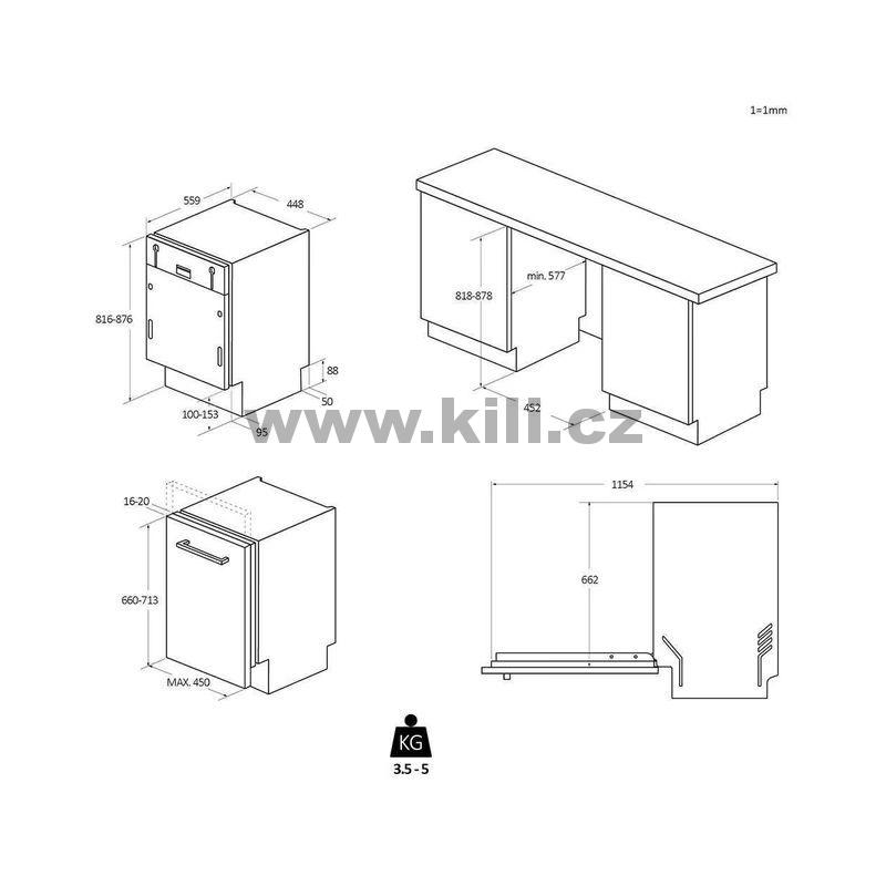 Myčky nádobí, Plně integrovaná, 11 sad nádobí, Energetická třída C, Pokročilé dálkové ovládání (Wi-Fi + BLUETOOTH®), Š x H x V (mm) 448x559x816