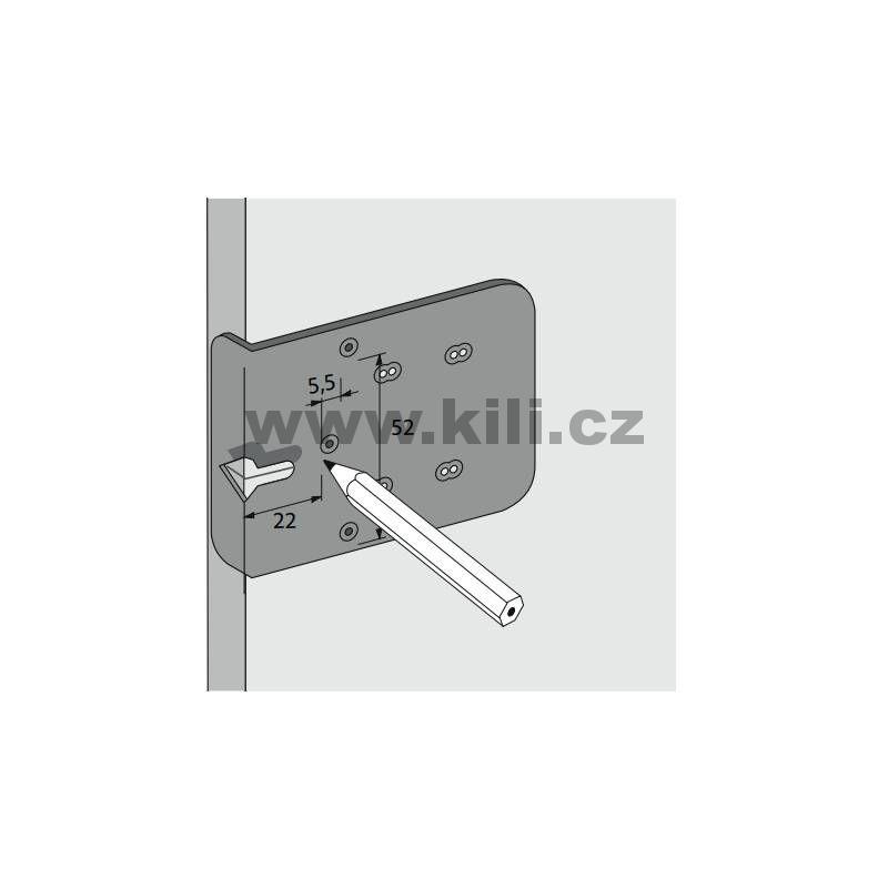 • Pro označení pozic otvorů pro závěsy (miska TH) a montážní podložky