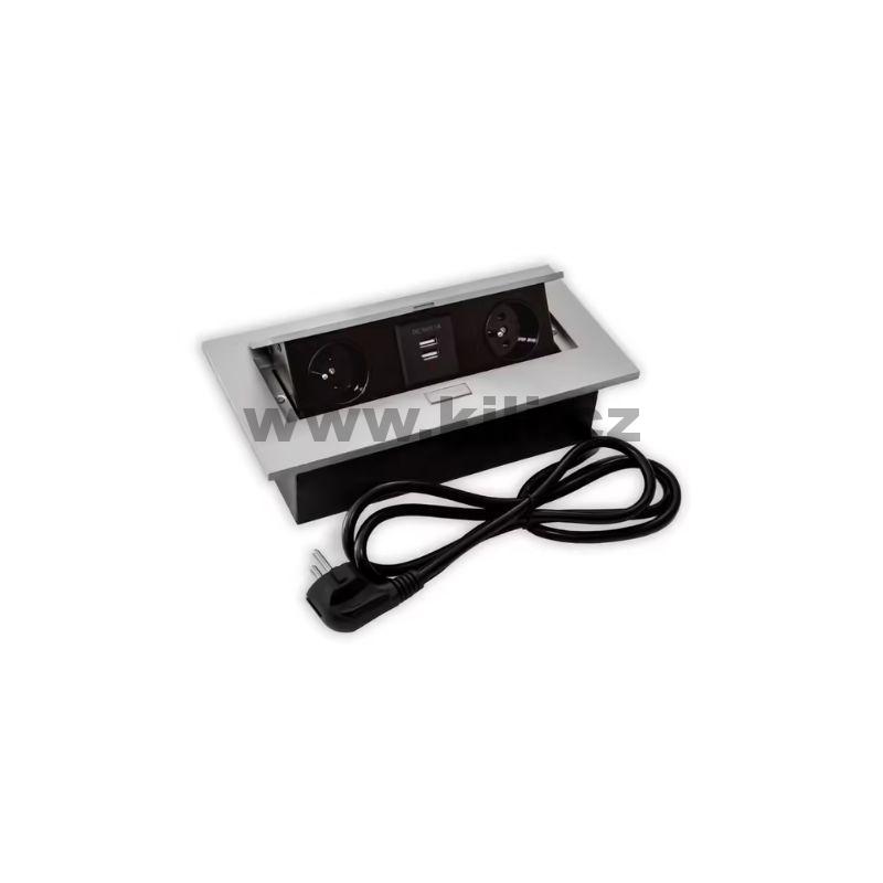 Elektro zásuvka výklopná FLEXI stříbrná - 2x zásuvka, 2x USB, 1x RJ45 s kabelem 3204037120