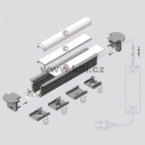 Lišta pro LED WIRELI DEEP10 černá anoda, vložená, max 2m, 3209202120