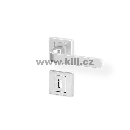 Dveřní kování FOLOS R HR KK - interiérové rozetové kování na hranaté rozetě se zajímavě řešeným tvarem kliky v povrchové úpravě nikl mat.