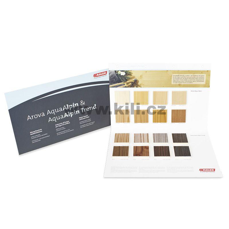 Vzorkovnice barevných odstínů mořidel Arova Aqua Alpin Trend.